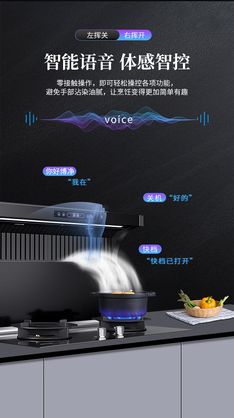 博凈分體式集成灶通過觸控面板、智能語音體感操控系統(tǒng),實現(xiàn)了定時預(yù)約、智能調(diào)節(jié)火力等功能。你只需輕輕一按或一聲指令,就能輕松控制集成灶的各項功能,讓烹飪變得更加簡單快捷。