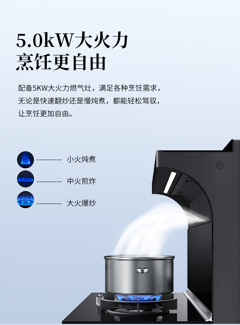 頂部設(shè)計的恒溫置物臺,既是烹飪時的便利操作區(qū),也是飯菜保溫的貼心助手。5.0KW大火力燃氣灶支持猛火爆炒與小火慢燉,滿足中式烹飪的多樣化需求。而煙灶聯(lián)動功能,更讓用戶無需手動開關(guān)油煙機,點火瞬間自動啟動排煙,徹底杜絕忘記開煙機的尷尬。